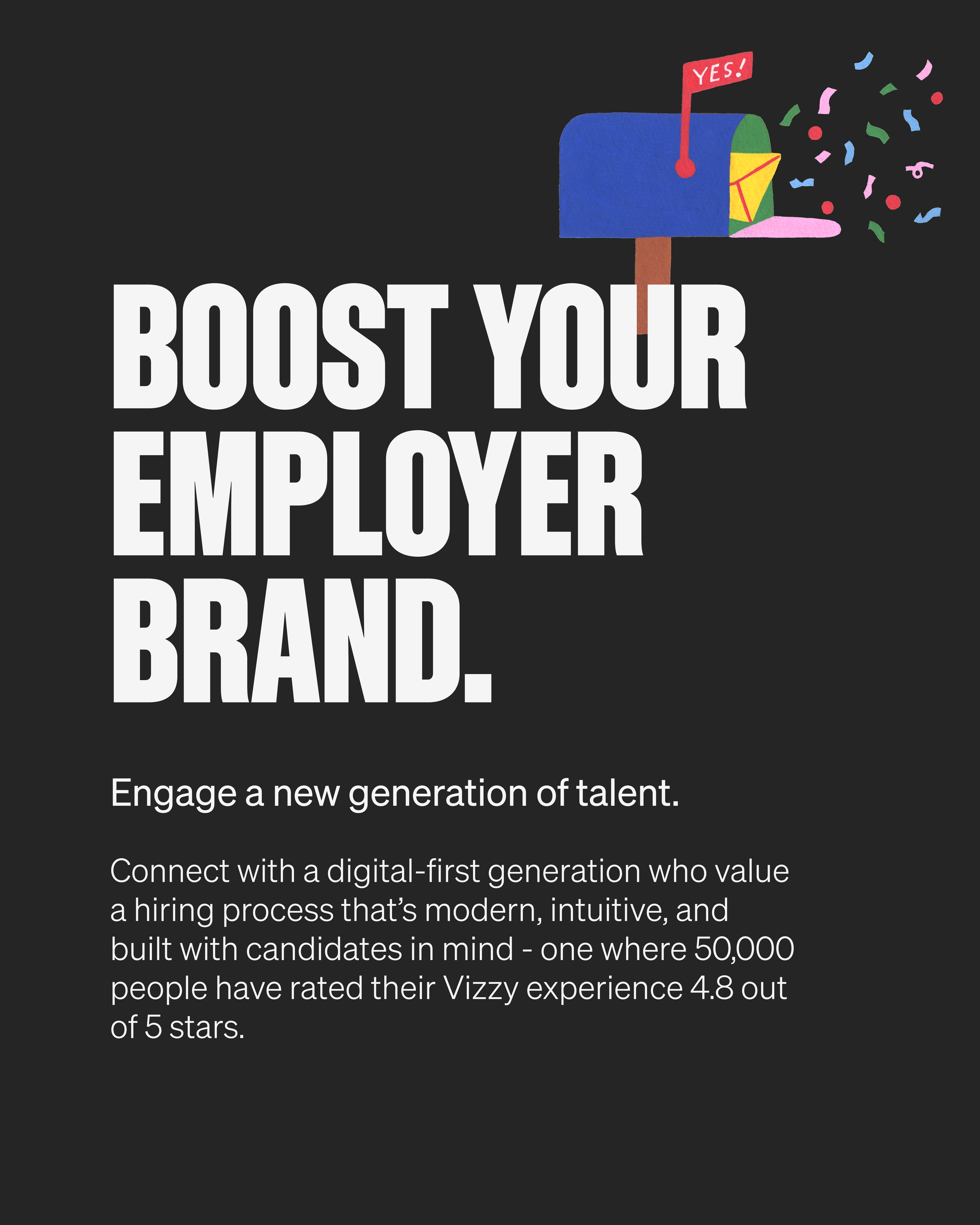 Vizzy creates a modern, intuitive, candidate-first experience that resonates with digital-native talent - reflected in a 4.8 out of 5 rating from over 50,000 candidates.